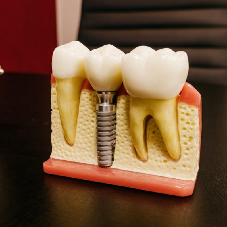 Dental implants are biocompatible structures that a dentist inserts into the jawbone to act as an artificial root.
